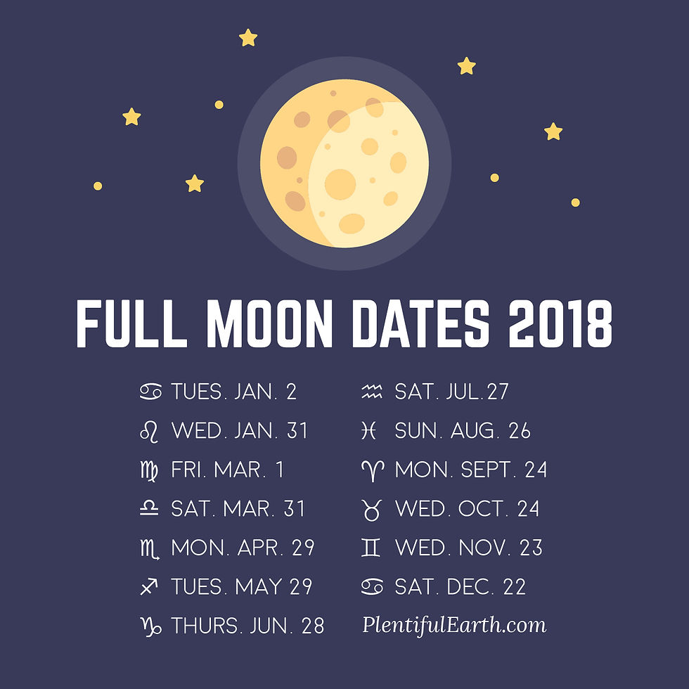 Below is a list of all of the Full Moons in 2018 so that you can plan ahead and make checking in with the Universe a monthly ritual, for your highest good and that of all involved; of course.